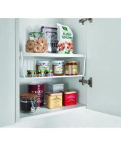 Hang deze witte hangmand van Metaltex onder een plank van een kastof je bureau en creeër gemakkelijk extra opbergruimte. Afmeting:40 x 26 x 14 cm. Materiaal: metaal.