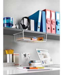 Hang deze witte hangmand van Metaltex onder een plank van een kastof je bureau en creeër gemakkelijk extra opbergruimte. Afmeting:40 x 26 x 14 cm. Materiaal: metaal.