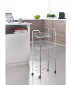 Metaltex opbergtrolley Ascona met 4 manden. Handig voor in de keuken of badkamer. De opbergtrolley is eenvoudig te verplaatsen door de wieltjes. Afmeting ca. 41 x 23 x 83 cm.Het stalen frame heeft een Polytherm coating met RVS-look, die antistatisch, roest- en krasbestendig is. 5 jaar garantie.