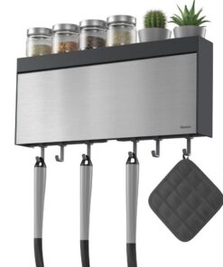- Verstelbaar en flexibel: kies tussen de keukenpapierhouder die op rollen van elk formaat past, of de set van 6 haken om keukengerei op te hangen. Ook te gebruiken voor het neerzetten van kruidenpotjes.