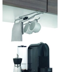 - De houder is gemakkelijk te bevestigen door hem over een keukenkastplank te schuiven