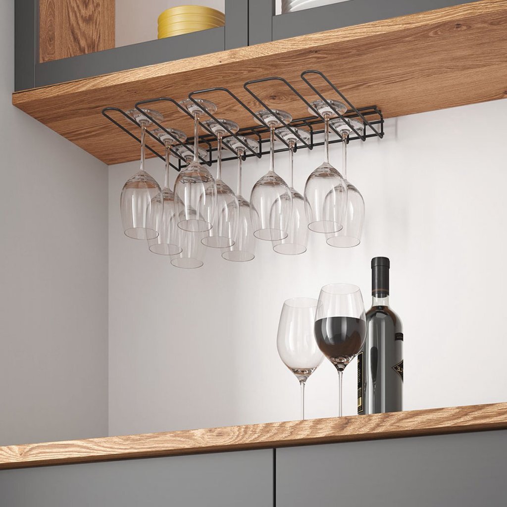 - Het metalen rek schroef je eenvoudig aan een plank of keukenkastje met het meegeleverde bevestigingsmateriaal