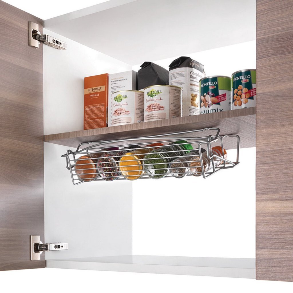 - Het kruidenrek is gemakkelijk te bevestigen onder een plank in een keukenkastje met de meegeleverde schroefjes