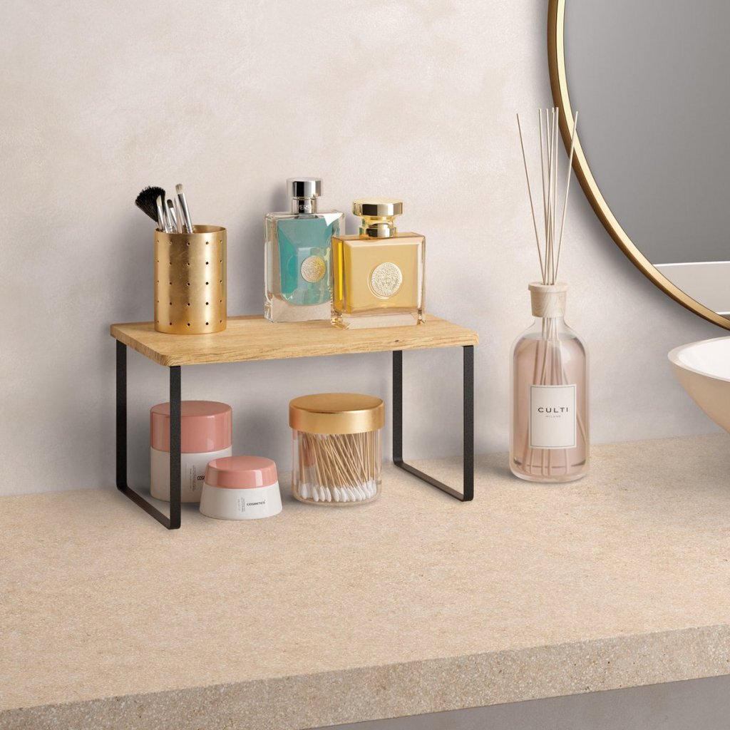 - Materiaal: acacia hout/zwart metaal