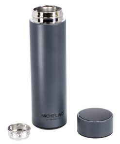 Uit dezeMichelino thermofles met temperatuur aanduiding kun je tot 0,5 liter aan warme of koude dranken schenken. De geïsoleerde fles heeft een gelakt oppervlak in een matte afwerking. De fles mag niet in de vaatwasser i.v.m. de batterij van het LCD scherm. Hij kan schoongemaakt worden met afwasmiddel.
