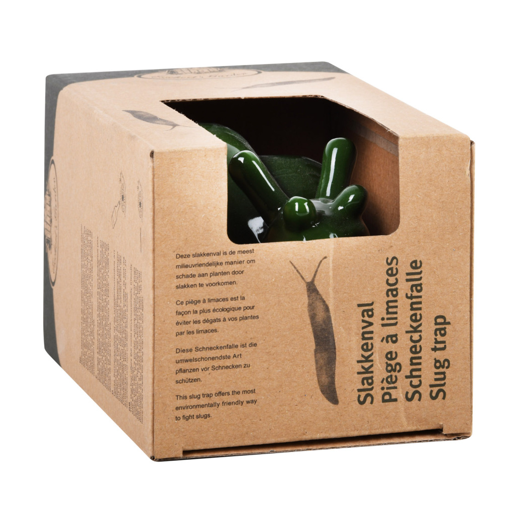 De meest vriendelijke manier om schade aan plannten door slakken te voorkomen. Giet via de opening een bodem vol met bier en de slakken zullen zich in het bier verdrinken en oplossen. Materiaal aardewerk. Kleur groen. Afmeting ca. 10,8 x 18 x 9 cm.