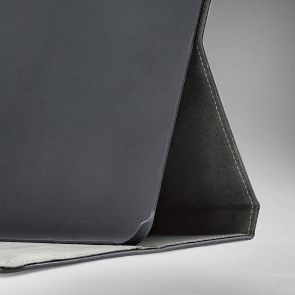 - Tevens heeft hij aan de linker binnenkant een band waar je hand doorheen kunt steken zodat je jouw tablet goed vast kan houden