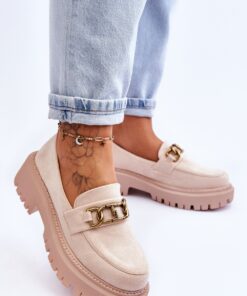 Deze klassieke mocassins voor dames zijn gemaakt van eco-suède. Ze zijn voorzien van een versiering aan de voorkant. Dit model is gezet op een massieve platte hak en plateau. De mocassins hebben een binnenzool van zacht eco-leer. Je moet ze zeker hebben!