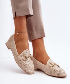 Stijlvolle mocassins van ecoleder zijn niet alleen een elegant accessoire, maar garanderen ook comfort als je ze draagt. Hun zachte binnenzool zorgt voor comfort, zelfs bij langdurig gebruik. De versiering op de voorkant van het bovenwerk draagt bij aan hun charme en unieke karakter. De mocassins hebben een platte hak, waardoor ze zowel bij broeken als jurken passen.