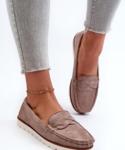 Dames mocassins gemaakt van eco-suède. De voorkant is versierd met gevlochten bandjes. Afgeronde neuzen. Zachte inlegzool van echt leer. Zool van rubbermateriaal. Dit model is een perfecte aanvulling op vele casual outfits.