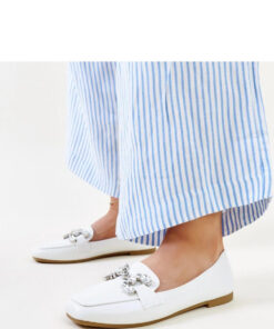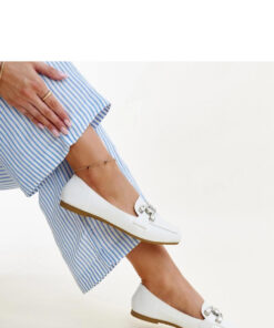 Witte mocassins met een zirkoon gesp Mali zijn de ideale keuze voor iedereen die houdt van lichte schoenen met een modieus ontwerp. Gemaakt van hoogwaardige rubber, ze zijn niet alleen stijlvol, maar ook zeer comfortabel. De zirkoon gesp voegt elegantie toe en maakt ze helemaal trendy. Bovendien maken hun slip-on ontwerp en vierkante neus ze uiterst praktisch en gemakkelijk aan te trekken. Met hen zal elke outfit op een geheel nieuwe manier schitteren! Buitenkant materiaal: Kunstleer Voering: Geen Zoolmateriaal: Rubber Zoolkleur: Bruin Sluiting: Slip-on Collectie: Lente/Zomer
