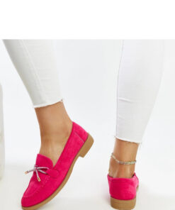 Donkerroze Endike mocassins zijn de ideale keuze voor iedereen die mode en comfort waardeert. Deze lage instappers zijn niet alleen stijlvol, maar ook zeer comfortabel voor dagelijks gebruik. De decoratieve strik met zirconia’s voegt er elegantie en originaliteit aan toe, waardoor ze een perfecte aanvulling zijn op elke outfit. Hun moderne ontwerp met een amandelpunt trekt de aandacht en geeft karakter aan de hele look. Gemaakt van hoogwaardig ecologisch leer, garanderen ze duurzaamheid en draagcomfort. De mocassins hebben een beige rubberen buitenzool, wat het gebruiksgemak verder verhoogt. In deze schoenen voel je je zowel modieus als comfortabel! Perfect voor het voorjaar/zomer seizoen.