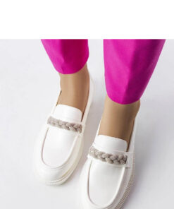 Witte mocassins versierd met zirkonia’s Montreal zijn de perfecte zomerschoenen. Gemaakt van hoogwaardig kunstleer, zorgen ze voor comfortabel dragen en een elegante uitstraling. De maatvoering is standaard, dus het is de moeite waard om bij het kiezen je eigen maat aan te houden. De instapsluiting vergemakkelijkt het snel aan- en uittrekken van de schoenen. De zool van kunststof is wit, wat lichtheid en frisheid aan de hele outfit toevoegt. Deze mocassins zullen een uitstekende aanvulling zijn op je zomergarderobe, waardoor deze subtiel gaat stralen dankzij de zirkonia’s.