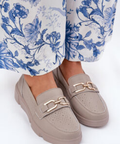 Mocassins voor dames gemaakt van natuurlijk leer, geplaatst op een subtiele sleehak, combineren elegantie met comfort. Afgeronde neuzen zorgen voor comfort gedurende de hele dag, terwijl het subtiele gouden detail aan de voorkant de schoenen een bijzonder karakter geeft. Het leren voetbed zorgt voor de juiste demping, waardoor comfort bij elke stap wordt gegarandeerd. Deze mocassins zijn een uitstekende keuze voor dagelijks gebruik, perfect passend bij zowel elegante als casual outfits.