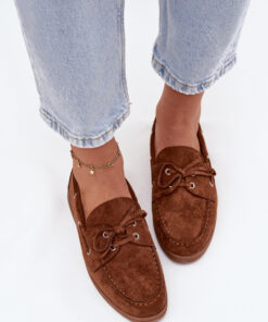 Dames mocassins van imitatie suède zijn een comfortabele en stijlvolle keuze voor elke dag. Geplaatst op een platte hak, garanderen ze draagcomfort, en de afgeronde neuzen voegen een subtiel karakter toe. Een interessant accent is het dunne bandje aan de voorkant en rond de schacht, dat subtiel de elegante en tijdloze uitstraling van de schoenen benadrukt.