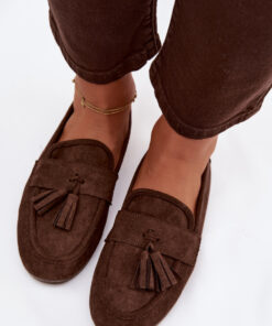 Mocassins gemaakt van imitatie suède voor dames zijn een comfortabele en stijlvolle keuze voor elke dag. De platte zool en zachte binnenzool zorgen voor draagcomfort, terwijl het klassieke ontwerp ervoor zorgt dat het model veelzijdig en gemakkelijk te stylen is. Aan de voorkant is een bandje versierd met franjes, wat de schoenen een subtiele, casual uitstraling geeft. Mocassins zijn perfect voor dagelijkse outfits.