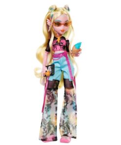 Deze Monster High pop is een nogal vintastisch zeemonster! Lagoona Blue ziet er gruwelijk cool uit in haar op Y2K geïnspireerde outfit. Haar bellenblazende piranha Neptuna ziet er ook weer spookachtig zoet uit, zoals altijd! Met haar beweegbare lijfje en accessoires met oceaanthema is Lagoona Blue een angstaanjagend geweldig cadeau voor kinderen vanaf 4 jaar. Met beweegbare ledematen. Pop kan niet los staan. Afwijkende kleuren en versieringen mogelijk.
