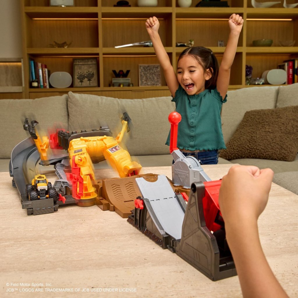 Deze speelset heeft een SmashBot-robot van 38,1 cm en een verstelbare werper waarmee kinderen de unieke Smash & Bash JCB Digatron-truck op een schaal van 1:64 kunnen lanceren. Laat je speelgoedmonstertrucks crashen en repareer ze in een paar klikken om de Monster Jam-actie gaande te houden. Richt je truck op de robot en probeer hem neer te halen. Versla SmashBot, repareer de robot in een oogwenk en herhaal dit zo vaak je wilt. Er zijn nog vele andere Monster Jam-trucks die je kunt verzamelen. Breid je collectie uit met Grave Digger, Megalodon, El Toro Loco en meer (elk afzonderlijk verkocht) en race met al je trucks. Geschikt voor kinderen vanaf 3 jaar.