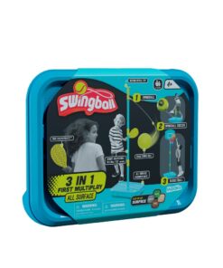 De Mookie 3in1 First Multiplay Swingballis de perfecte introductie tot Swingball, voor de jongste spelers! De 3in1 Swingball bevat First Swingball, First Soccer en First Basketball. Het is een geweldige manier om de hand-oogcoördinatie te ontwikkelen en kinderen veel actief plezier te bezorgen. Ontworpen met jongere kinderen in het achterhoofd. Wordt geleverd met de gemakkelijk te raken schuimbal om blessures te voorkomen en lichte ‘kleine handjes’-bats met kleinere handvatten en een groter racketblad. First Basketball All Surface is de perfecte speelset voor kinderen die leren basketballen, met een basketbalnet en een vinyl bal. De First Soccer All Surface Swingball heeft een spiraalvormige basis voor het touw en wordt geleverd met een vinyl voetbal met opblaaspomp. Geschikt voor kinderen vanaf 4 jaar.