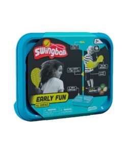 Mookie Early Fun Swingballis de perfecte introductie tot Swingball voor de kleintjes! Al het plezier van het klassieke Swingball spel, ontworpen met uw kinderen in gedachten. Early Fun Swingball wordt geleverd met een paal met een spinnertop, waaraan het touw bevestigd is, een veilige schuimrubberen bal en lichte tennisrackets die zijn ontworpen om door kleinere handen te worden vastgehouden. De basis is nieuw en verbeterd, met een geïntegreerd handvat voor gemakkelijk meenemen en een waterstop om morsen te voorkomen. De All Surface-basis heeft speciale voetjes voor een stabiele gameplay en kan worden omgevormd tot een handige draagkoffer. Swingball is niet alleen geschikt voor de achtertuin: dankzij de basis kun je overal en op elk oppervlak spelen. Vul gewoon de basis met zand of water en dan ben je klaar! Swingball is een geweldige manier om hand-oog coördinatie te ontwikkelen. Gemonteerde afmetingen: 46,6 x 35,6 x 9,6 cm. Geschikt voor kinderen vanaf 3 jaar.
