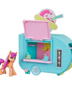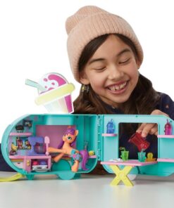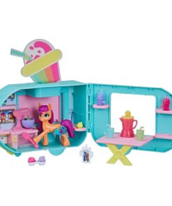 Sunny Starscout is een avontuurlijke aardpony die zoete lekkernijen maakt in haar mobiele smoothietruck in de serie My Little Pony: Make Your Mark. Deze My Little Pony-set bevat een beweegbare ponyfiguur van 7,5 cm die kinderen op verschillende manieren kunnen opstellen. Deze foodtruckspeelset voor kinderen gaat open en wordt een keuken met namaaketen om mee te spelen! Stel je voor dat je namaakcupcakes maakt in de oven of namaaksmoothies met het blenderaccessoire. Druk de hoef van het Sunny Starscout-speelgoed op de hendel van de truck om de neonreclame aan te steken en het raam te openen. Open vervolgens de truck om de speelkeuken aan de binnenkant te ontdekken. De set bevat 15 accessoires waarvan je sommige kunt vastmaken aan Sunny’s hoef. De foodtruck, speelsets voor kinderen en kleine poppen van My Little Pony zijn ideaal als verjaardagsgeschenk voor meisjes en jongens vanaf 5 jaar.