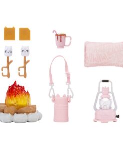 Kampeer in perfecte stijl met deze set! De zachte modepoppen kunnen nu in stijl kamperen met hun knusse tent en slaapzak en accessoires met dierenthema. De op een kitten geïnspireerde tent is makkelijk op te zetten, stijlvol, comfortabel en inclusief voordeur die je kunt oprollen en raam aan de achterkant. Hij heeft zelfs oren en een staart! De meer dan 10 accessoires omvatten het flakkerende kampvuur, de op een kitten geïnspireerde s’mores met marshmallows op een stokje en de biscuits met kittenoren die je in elkaar kunt klikken, roze beker chocolademelk met kittenvormige marshmallows, op een kitten geïnspireerde veldfles, lantaarn die echt licht geeft, kittenkussen en pluchen slaapzak die je echt kunt oprollen! Geschikt voor kinderen vanaf 5 jaar.