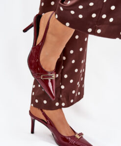 Stijlvolle en elegante pumps van imitatieleer, geplaatst op een naaldhak, vormen een combinatie van klassiek met een moderne touch. Aan de voorkant van de schoen bevindt zich een bandje versierd met een gouden gesp, wat hen een bijzondere elegantie geeft. De spits toelopende neuzen maken de benen optisch slanker en geven de silhouet een elegante uitstraling. Ideaal voor avondjes uit, speciale gelegenheden of elegante bijeenkomsten.
