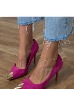 Klassieke dames pumps gemaakt van hoogwaardig ecologisch suède, die elegantie combineren met een moderne touch. Het metalen puntige element geeft de schoenen een origineel en opvallend karakter. Het model met een hoge hak van 10 cm benadrukt subtiel de silhouet, en de binnenzool van ecologisch leer zorgt voor comfortabel dragen gedurende de hele dag. Ideaal voor speciale gelegenheden wanneer je er stijlvol en elegant uit wilt zien.