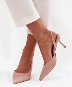 Stijlvolle damespumps gemaakt van hoogwaardig textielmateriaal zijn de essentie van vrouwelijke elegantie. Het model met een open hiel benadrukt subtiel de voet, terwijl de puntige neus klasse en lichtheid toevoegt. Ideaal voor speciale gelegenheden, ze passen perfect bij cocktailjurken, elegante broeken of midi-rokken.
