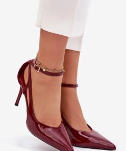Hoge hakken voor dames gemaakt van gelakt ecologisch leer zijn een stijlvolle en elegante touch die zowel geschikt is voor avondjes uit en speciale gelegenheden, als voor meer formele, zakelijke outfits. Slanke, puntige neuzen verlengen subtiel de benen, terwijl de riem met gespverstelling zorgt voor een perfecte pasvorm. Universeel, elegant en tijdloos ontworpen om de vrouwelijke stijl te benadrukken.