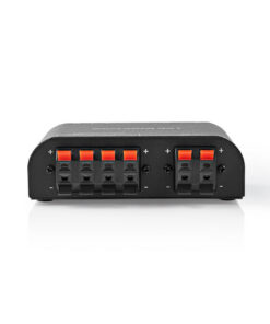 Met deze Nedis® luidsprekers-schakelaar schakel je tussen twee speaker-sets of je laat het geluid door beide speakers tegelijk klinken via één uitgang.