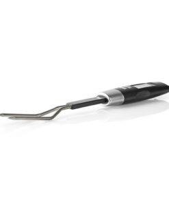 Omdat de thermometer tevens een vleesvork is, kun je de kerntemperatuur meten terwijl je je bijvoorbeeld je hamburgers omdraait.