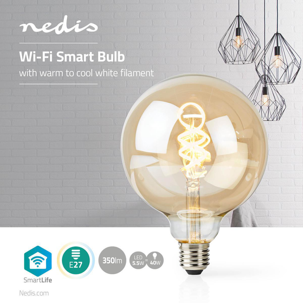 Sluit de lamp aan en je kunt de helderheid bedienen via de Nedis® SmartLife-app op je smartphone of tablet, of met een eenvoudige spraakopdracht via Siri, Amazon Alexa of Google Home.
