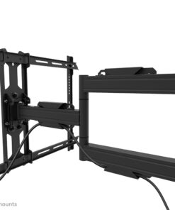 De Neomounts WL40 S-850 BL16 is een full motion wandsteun voor flat screens tot 70″ met een maximaal draagvermogen van 45 kg. Door de veelzijdige kantel- (14°) en zwenktechnologie (40°) creëer je de optimale kijkhoek. Voor de perfecte installatie is niveauverstelling beschikbaar. De WL40 S-850 BL16 heeft een diepte van 4,7-55,5 cm en is geschikt voor schermen met VESA gatenpatroon 100 x 100 tot 800 x 400 mm. De wandsteun is voorzien van een Easy-release systeem, waarmee je de tv in een oogwenk kunt bevestigen. Een losse waterpas wordt meegeleverd, evenals een bevestigingssjabloon, om eenvoudige installatie van de steun te garanderen. De steun is voorzien van hoogwaardig stalen kabelmanagement, zodat eventuele losse kabels aan de achterkant van het scherm vastgezet kunnen worden.