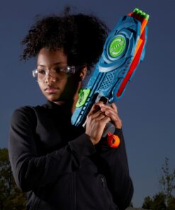 Gooi je in de strijd met de Nerf Elite 2.0 Flipshots Flip-8-blaster! De blaster heeft 8 lopen, 4 die naar voren zijn gericht en 4 die naar achteren zijn gericht. Vuur darts af van de 4 naar voren gerichte lopen en keer de 4 naar achteren gerichte lopen naar voren om darts te blijven afvuren. Net wanneer je tegenstanders denken dat het met je gedaan is, kan je ze verrassen met 4 extra geladen lopen! De rug-aan-rug lopen zijn verbonden om ze snel en makkelijk om te draaien wanneer je het vizier naar achteren trekt. Het vizier bovenaan de blaster is tegelijk ook het omdraaimechanisme; trek het naar achteren om van loop te wisselen. Elke loop bevat 1 dart en de blaster kan 8 darts bevatten. Trek de hendel naar beneden om de blaster door te laden en haal de trekker over om 1 dart af te vuren. Inclusief 8 officiële Nerf Elite 2.0-schuimdarts. Het dragen van een bril is aanbevolen (niet inbegrepen). Handmatig aangedreven (geen batterijen nodig).