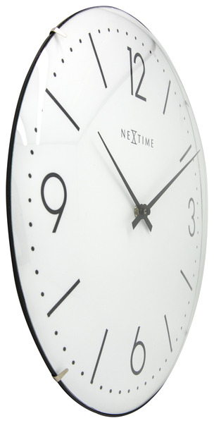 De NeXtime Basic Dome wandklok is een elegante ronde wandklok en past in elk modern interieur. De uuraanduiding is weergegeven met cijfers op de 3,6,9 en 12 en strepen voor de overige uren. De bolvormige glasplaat voor de wijzerplaat beschermt de wijzers en geeft deze klok een unieke uitstraling. Een simpel, maar prachtig ontwerp met een geruisloos uurwerk. Afm. 35cm