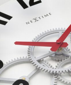 DeNeXtime NE-3259WI Moderne Gear wandklok heeft een witte wijzerplaat, een zwarte kast en een duidelijke zwarte cijferindex die op de glasplaat is gedrukt. Dit ontwerp heeft een eigen draai gegeven aan een ontwerp van een klassieke gear klok door de combinatie van moderne rode wijzers, een duidelijke cijferindex en zilver kleurige bewegende kunsstof tandwielen. Deze wandklok is 36 cm en werkt op 1 AA batterij (niet inbegrepen).