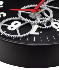 DeNeXtime NE-3259ZW Moderne Gear wandklok heeft een zwarte wijzerplaat, een zwarte kast en een duidelijke witte cijferindex die op de glasplaat is gedrukt. Dit ontwerp heeft een eigen draai geven aan een klassiek gear klok ontwerp door de combinatie van moderne rode wijzers, een duidelijke cijferindex en zilver kleurige bewegende kunsstof tandwielen. Deze wandklok is 36 cm en werkt op 1 AA batterij (niet inbegrepen).