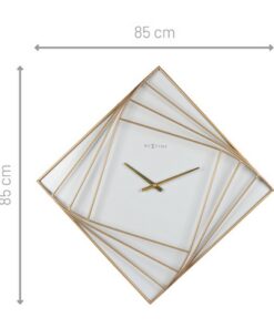 DeNeXtime NE-3268 Turning Square is een grote wandklok (85 x 85 x 6,5 cm). Deze unieke vierkante klok is een win-win situatie voor uw interieur, het is niet alleen een echt kunstwerk maar ook nog functioneel. Deze klok heeft een witte wijzerplaat, een open goud metalen design en gouden wijzers. De klok werkt op 1 AA batterij en heeft een stil uurwerk, dus geen tikkend geluid!
