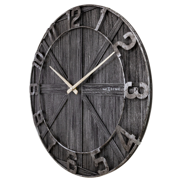 De groteNeXtime NE-3276ZW wandklok York is een ware blikvanger en maakt een groot statement in elke kamer. De zwarte robuuste wijzerplaat is gemaakt van écht hout wat elke klok uniek maakt. De klok heeft klassieke witte wijzers en grote metalen index cijfers die het klokkijken zelfs van verre afstand makkelijk maakt. Deze klok is stil (dus erg geschikt voor de slaapkamer) en werkt op 1x AA batterij (niet inbegrepen).