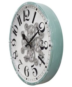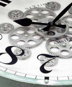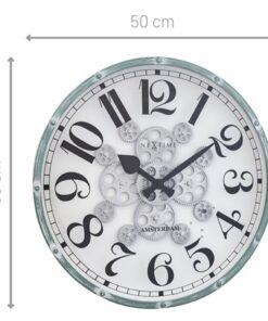 Deze NeXtime “Henry” klok (Ø 50cm) heeft écht werkende tandwielen waardoor je de tijd letterlijk ziet bewegen! Deze stijlvolle grote industiële klok is een mooi kunstwerk voor aan je muur. De combinatie van de vintage groene klokrand, de mooie cijfer index (geprint op het glasplaat) en de gebroken witte wijzerplaat geeft deze klok een romantisch tintje. Het hoge contrast tussen de zwarte cijfer index en de zwarte wijzers en de gebroken witte wijzerplaat zorgen ervoor dat je met gemak de tijd kan aflezen. De bewegende tandwielen zijn afzonderlijk aan en uit te zetten. Deze klok werkt op 3xAA batterij (niet inbegrepen).