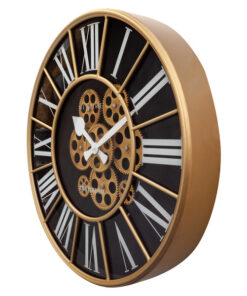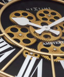 Deze NeXtime “William” wandklok heeft écht werkende tandwielen! Zijn ontwerp en grootte (Ø 50cm) maken van deze klok een ware pronkstuk. De “William” geeft elke kamer een moderne en industriële look! De glasplaat over de klok is bedrukt met een gebroken witte cijfer index. De combinatie van de witte cijfer index, de witte wijzers en de zwarte wijzerplaat zorgen voor een heldere contrast die het klokkijken makkelijk maakt. De bewegende tandwielen zijn afzonderlijk aan en uit te zetten. Deze klok werkt op 3xAA batterij (niet inbegrepen).