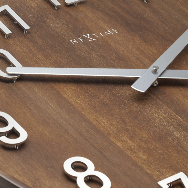 NeXtime’s Precious grote (50 cm) houten wandklok heeft een stijlvolle, chique uitstraling. De cijfers van de index hebben een geborstelde zilver metalen afwerking en zijn weg genageld uit de natuurlijke houten wijzerplaat. Dit creeert een prachtig geavanceerde 3-dimensionaal effect en een speelse schaduw op de walnoten wijzerplaat. Deze eye-cather is voorzien van een stil uurwerk en werkt op 1 x AA batterij (niet inbegrepen)