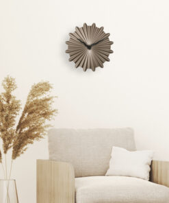 NeXtime’s Sunny metalen wandklok (40cm) is een stijlvol en decoratief kunstwerk. De bruinkleurige wijzerplaat is gemaakt van gecoat metaal en heeft een bijzondere gevouwen vorm. Deze stille klok heeft een subtiele glans en heeft een mooi contrast bij de zwarte, golvende wijzers. Deze klok werkt op 1 x AA batterij (niet inbegrepen)