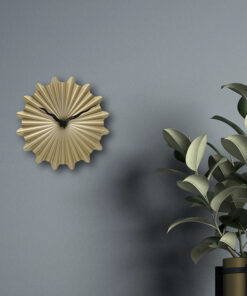 NeXtime’s Sunny metalen wandklok (40cm) is een stijlvol en decoratief kunstwerk. De goudkleurige wijzerplaat is gemaakt van gecoat metaal en heeft een bijzondere gevouwen vorm. Deze stille klok heeft een subtiele glans en heeft een mooi contrast bij de zwarte, golvende wijzers. Deze klok werkt op 1 x AA batterij (niet inbegrepen)