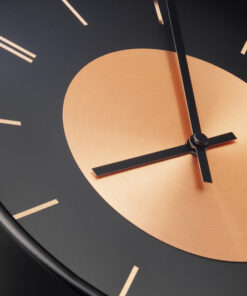 Wandklok Retro II (25cm) van NeXtime brengt een eigentijdse twist aan de glamoureuze stijl van de jaren 60. Dit stille uurwerk in zwart/koper met strakke zwarte wijzers steken scherp af tegen de contrasterende achtergrond, waardoor de tijdsaanduiding duidelijk en eenvoudig te lezen is. Deze combinatie van functionaliteit en design voegt niet alleen een vleugje moderne luxe toe aan je interieur, maar brengt ook een eerbetoon aan de rijke geschiedenis van design uit het verleden. Deze klok werkt op 1 x AA batterij (niet inbegrepen).