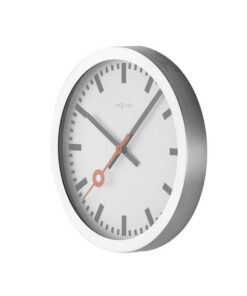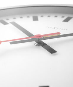 De NeXtime Station wandklok is een favoriet bij vele klokliefhebbers. Deze klok combineert een bekend en traditioneel ontwerp met de NeXtime stijl. De klok heeft een aluminium rand met een witte wijzerplaat. De zwarte strepen geven de uuraanduiding aan. De rode opengewerkte secondewijzer loopt geleidelijk rond, waardoor de klok geluidloos is.