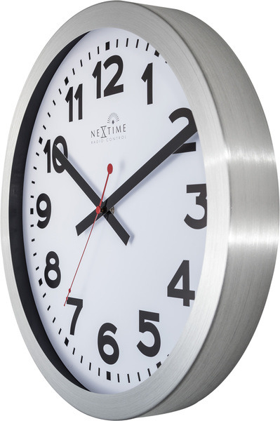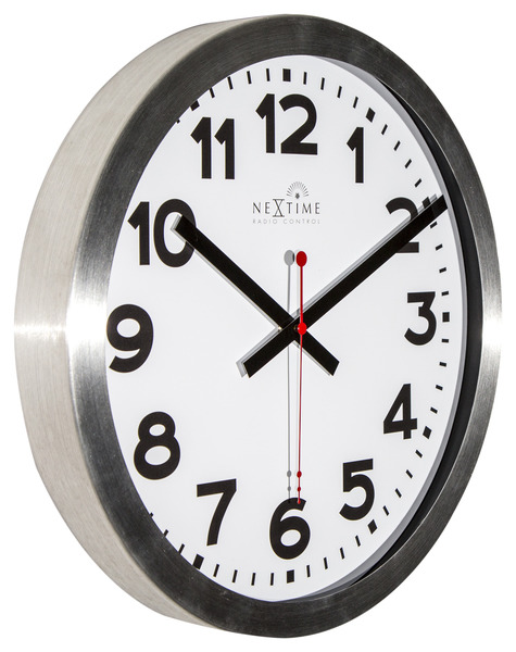 De NeXtime Station wandklok is een favoriet bij vele klokliefhebbers. Deze klok combineert een bekend en traditioneel ontwerp met de NeXtime stijl. De klok heeft een aluminium rand met een witte wijzerplaat. De zwarte cijfers geven de uuraanduiding aan. De rode opengewerkte secondewijzer loopt geleidelijk rond, waardoor de klok geluidloos is. Deze klok is radio controlled, waardoor u nooit meer de tijd goed hoeft te zetten, dat gaat vanzelf! Afm. 35cm