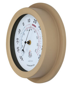De NeXtime “Lily” is een metalen tuinthermometer die buiten gebruikt kan worden. Het gebruik van extra rubberen ringen om te voorkomen dat het water de kwetsbare delen van de thermometer bereikt, maakt deze meter bijzonder en weerbestendig. De thermometer is robuust en van metaal en met Ø 22cm past hij overal. De wijzerplaat is wit en heeft grote cijfers en blauwe en rode kleuren voor een goed begrip van de huidige temperatuur. Door de zwarte wijzer is de meter goed afleesbaar. De meter heeft geen batterijen nodig.