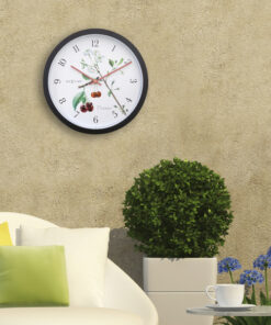 DeNeXtime NE-4314 buitenklok Prunus is niet alleen functioneel maar ook een feestje om naar te kijken. De witte wijzerplaat is voorzien van een vintage aquarel illustratie van kersenbloesems, die vitaliteit en kracht van de natuur symboliseren. Het gebruik van extra rubberen ringen om te voorkomen dat het water de kwetsbare delen van de klok bereikt, maakt deze klok bijzonder en weerbestendig. De klok is geschikt voor zowel binnen als buiten en werkt op 1x AA-batterij (niet inbegrepen). Kleur: zwart/wit. Diameter: 30, 5 cm.